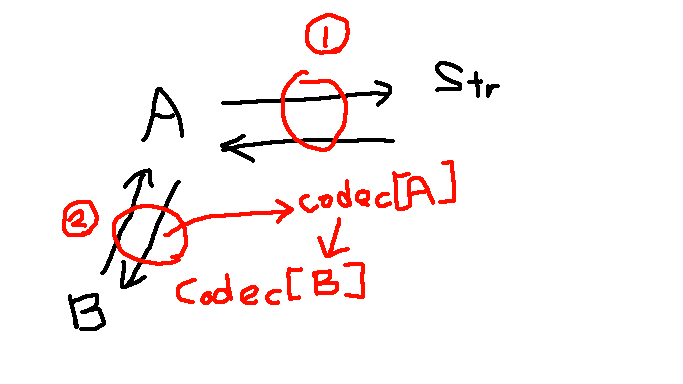 마지막으로, invariant functors는 F[A]를 F[B]로 가게 하는데에 A=>B와 B=>A를 동시에 쓰는거다.