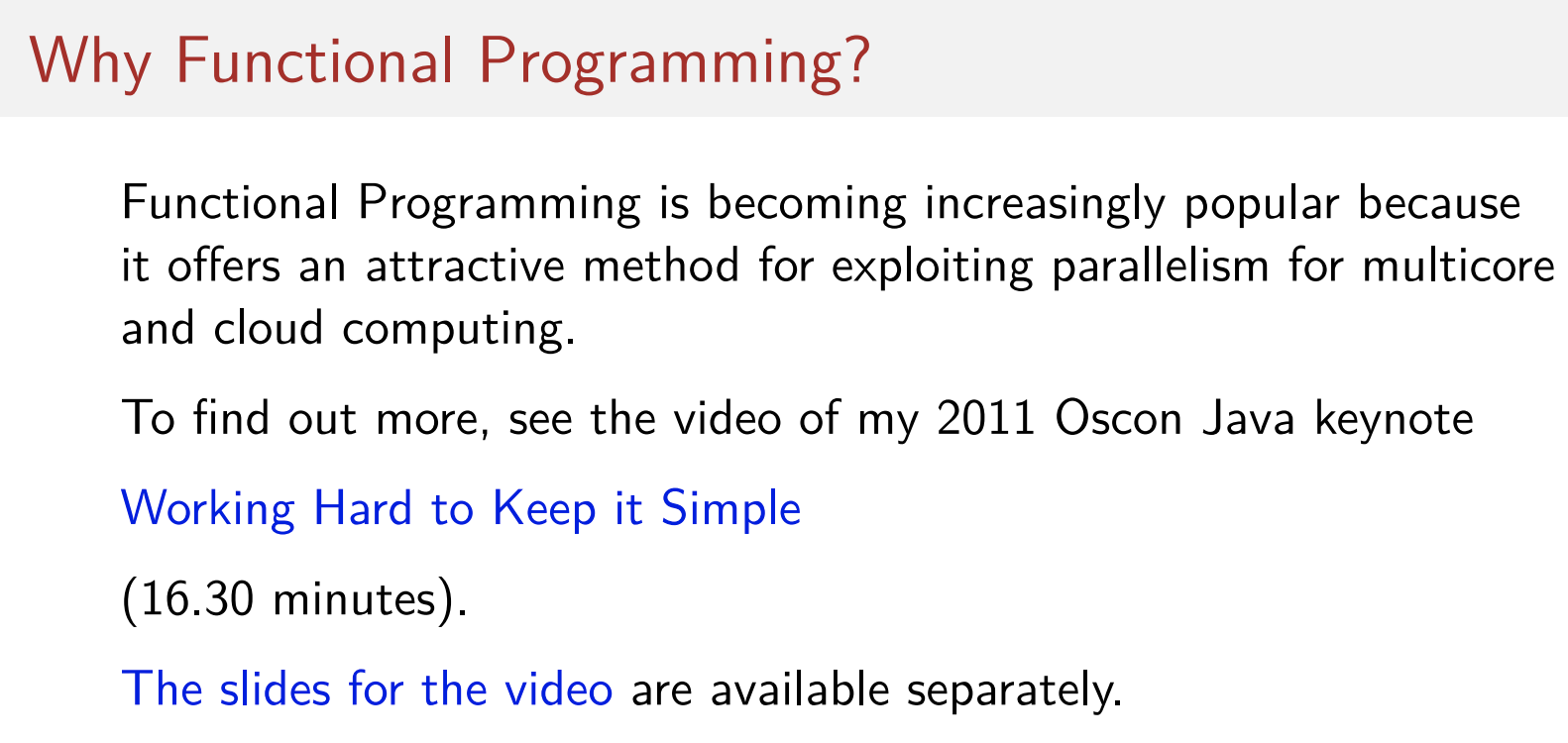 FP가 Imperative programming보다 어떤 면에서 Concurrency, parallelism에 좋은지에 대해 소개하는 부분이 인상적이다.