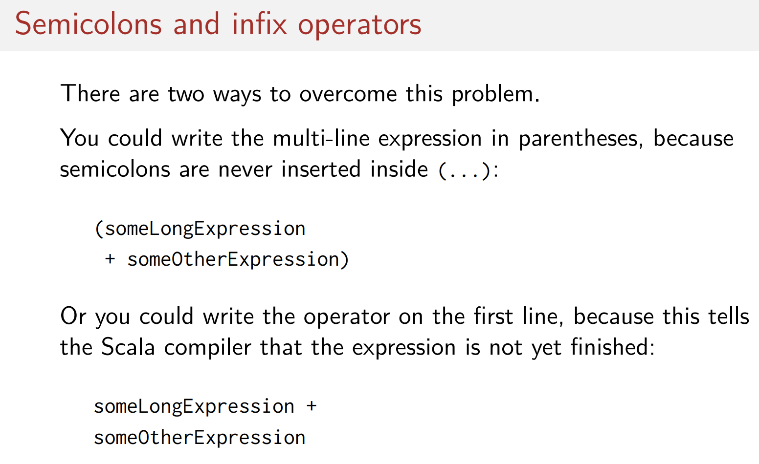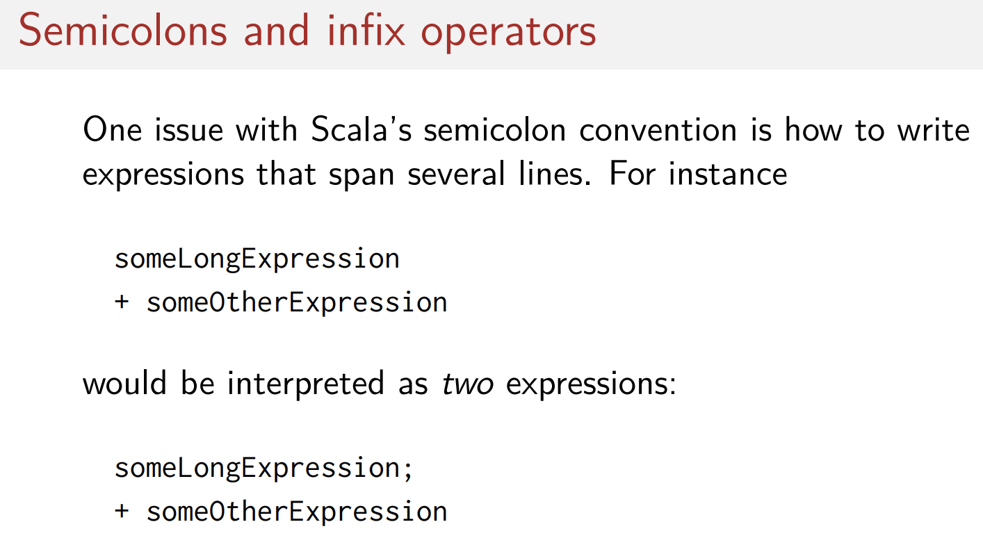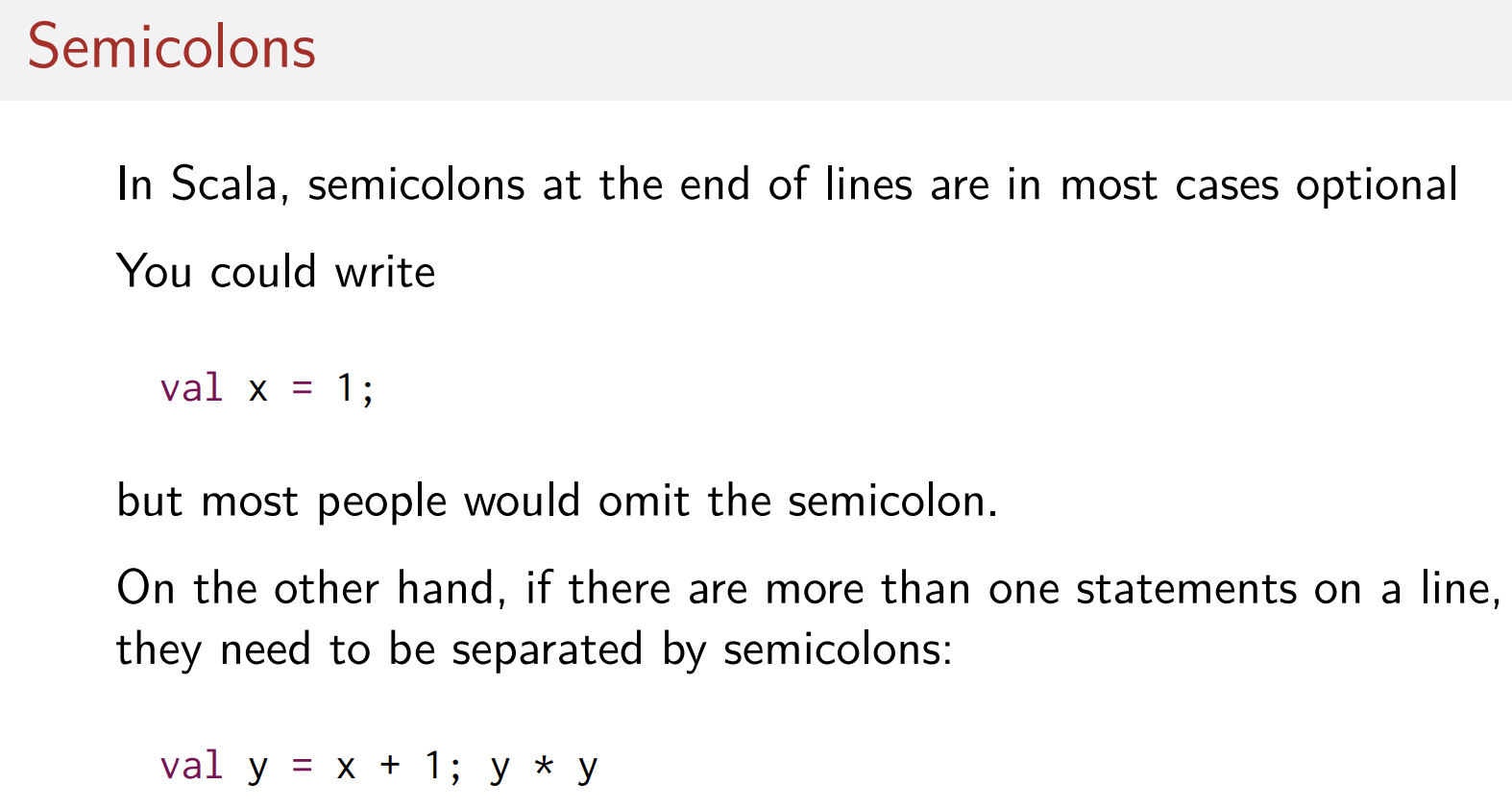 스칼라에서는 한줄에 여러개 쓰고 싶지 않은 이상 세미콜론이 필수적인 것은 아니다.