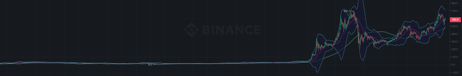 세계 1위 암호화폐 거래소 바이낸스가 발행한 바이낸스코인 BNB의 현재 가격은 600달러 근처에서 왔다갔다 하고 있습니다.