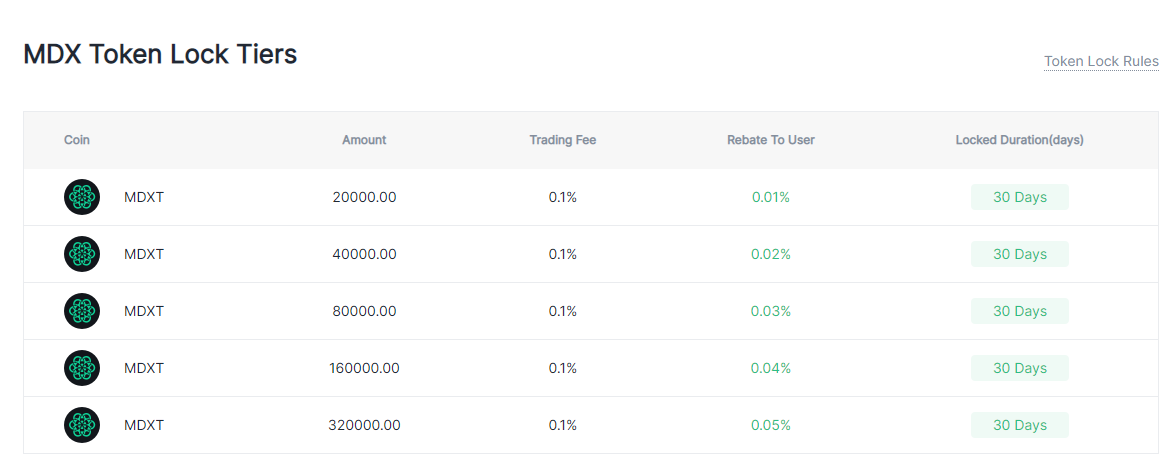 기본적으로 0.1퍼센트. 바이낸스와 동일한데요, 얼마만큼의 만달라 코인(MDXT)를 Lock 시켜놓느냐에 따라서 (거래 불가 상태로 만들어 놓기) 최대 0.05퍼센트를 리베이트 받아서 0.05퍼센트의 수수료만 내고 거래가 가능합니다.