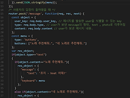 2018/05/27 - [Programming Project/Node로 카톡-페메봇 만들기] - Node.js로 카카오톡 플러스 친구 봇 만들기 03 (api 응답 서버 제작)