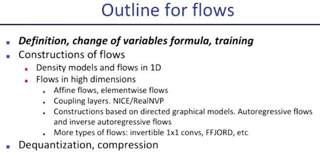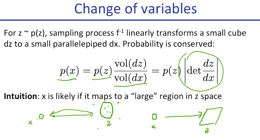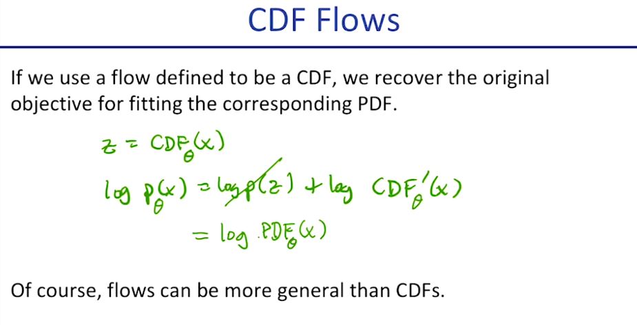 maximum likekihood 는 probability density에 기반한다. 그렇지만 우리는 더이상 probability density가 아닌 flows에 기반한 모델을 만들어야 한다. 그 말인즉슨, 우리는 어떤 point에 대한 probability density를 flow안에서 계산할 수 있어야 한다는 말이다.