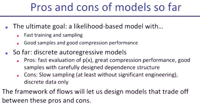 이 density model과 compatible(호환이 되는)하면서도, train가능한 모델을 찾아야 한다. 이 것이 density model을 디자인 할 때 중요한 포인트가 된다.