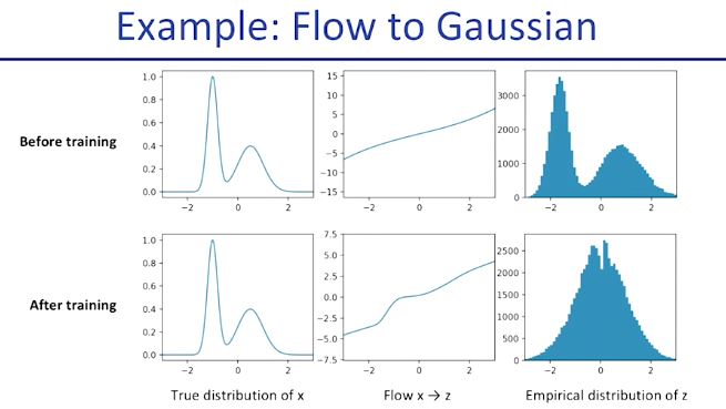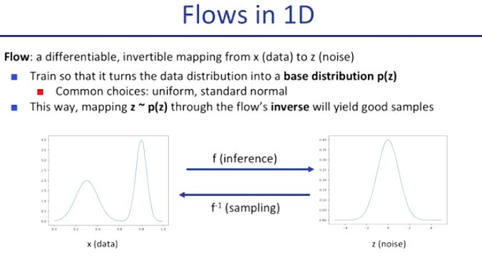 그리고 우리가 성공적으로 data를 base distribution으로 mapping 시키는 것에 성공하면, 우리는 new sample들을 model로 부터 생성해낼 수 있다는 말도 된다.