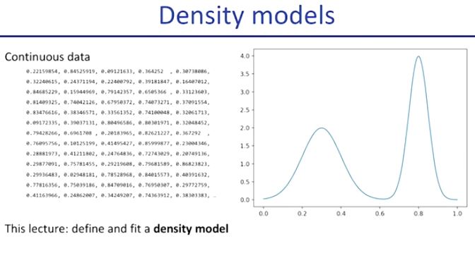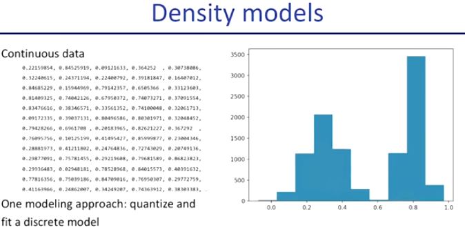 그렇지만 우리는 continous data(연속적인 데이터)를 바로 이용하고 싶다. 이것을 density model이라고 한다.