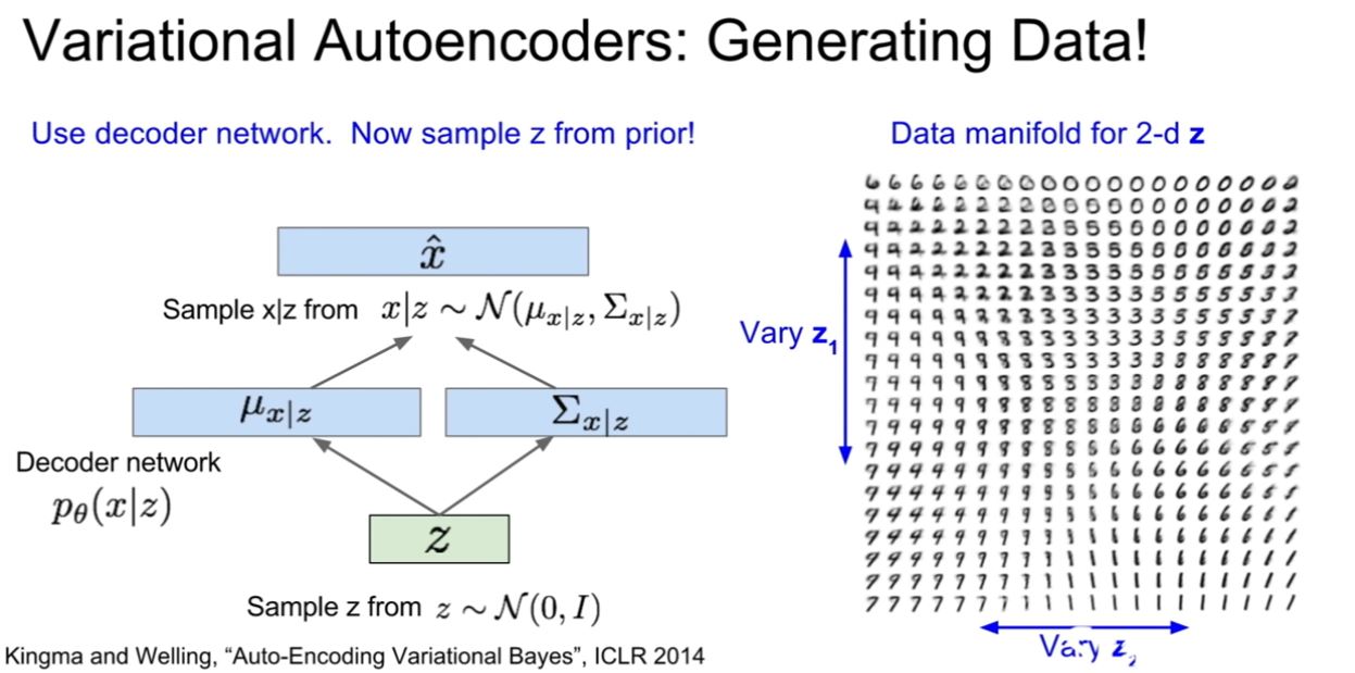 디코더 네트워크만 가지고서 데이터를 만들어 낼 수 있다.