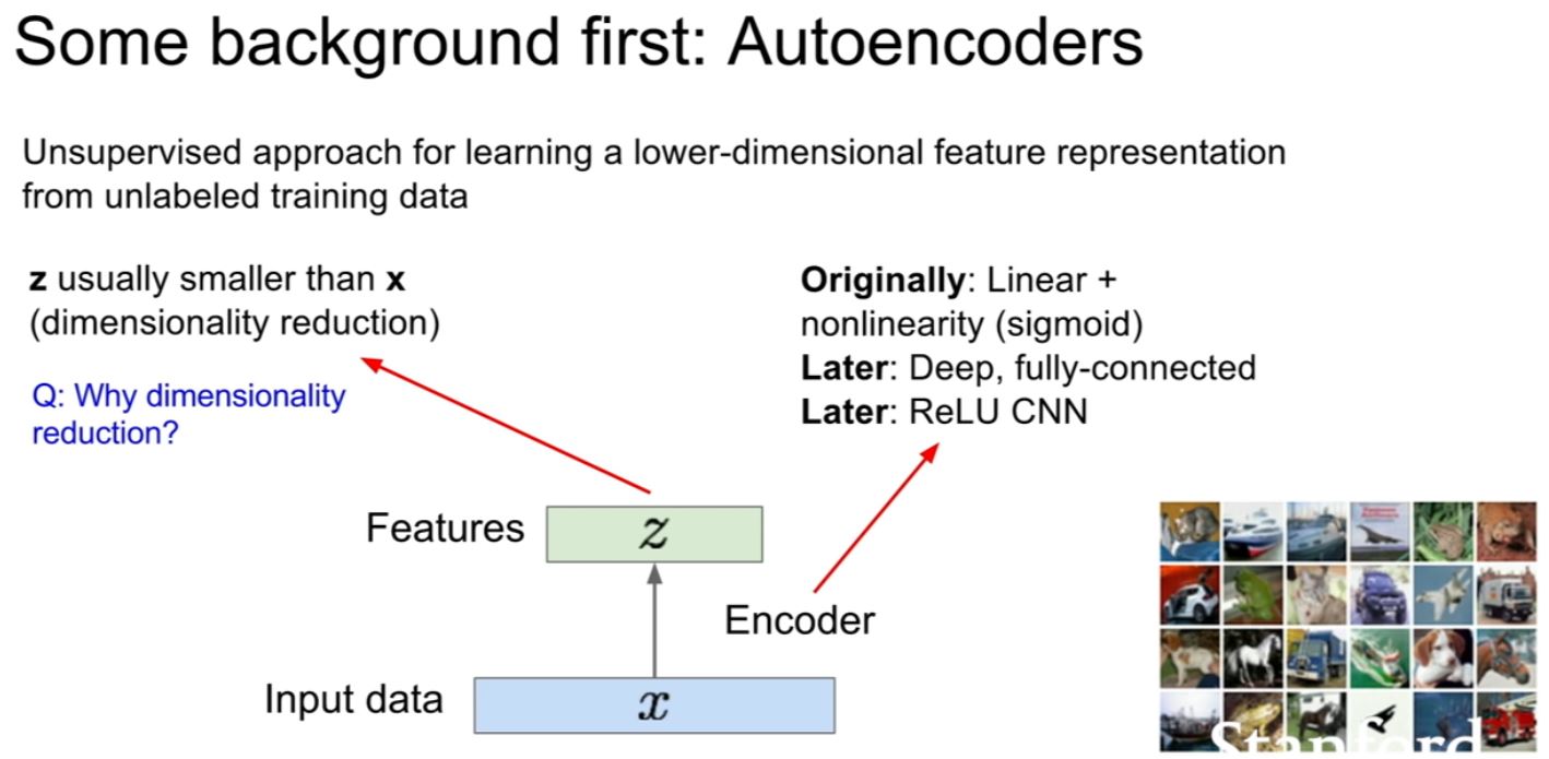 주로, z는 x보다 dimensionality가 축소된다. 그 이유는 z는 x로부터 뽑힌 가장 중요한 정보들만을 담고 있어야 하기 때문이다.