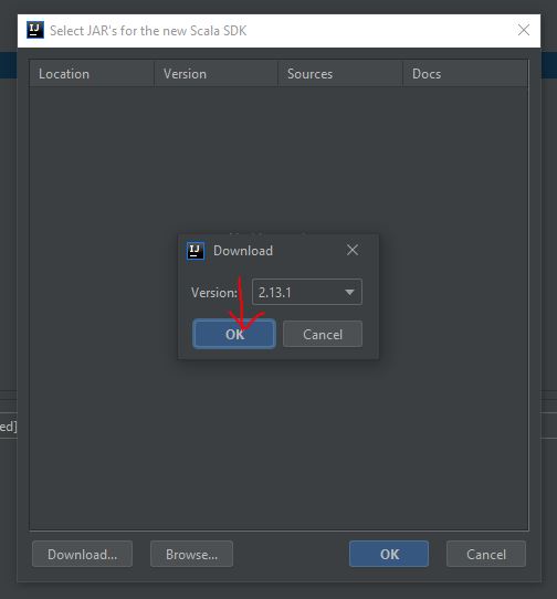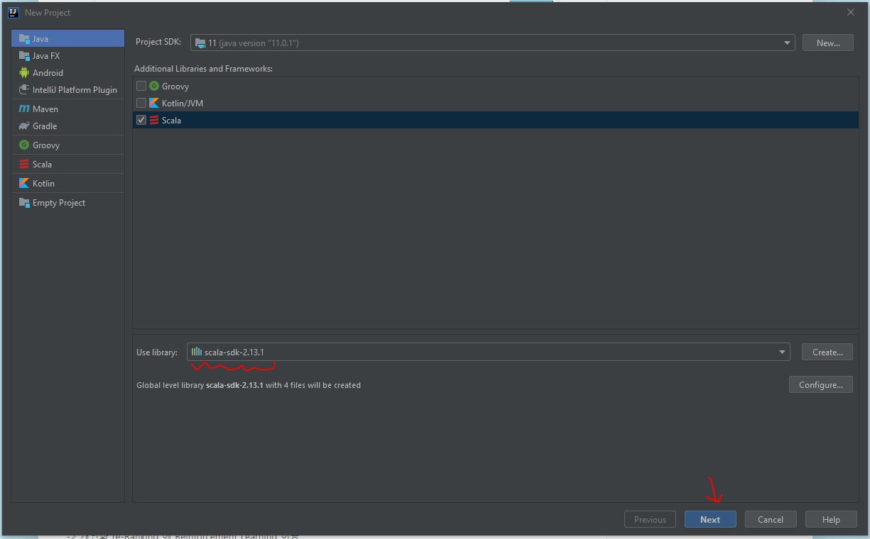 Scala 체크 후 오른쪽에 체크표시 한 Create 클릭
