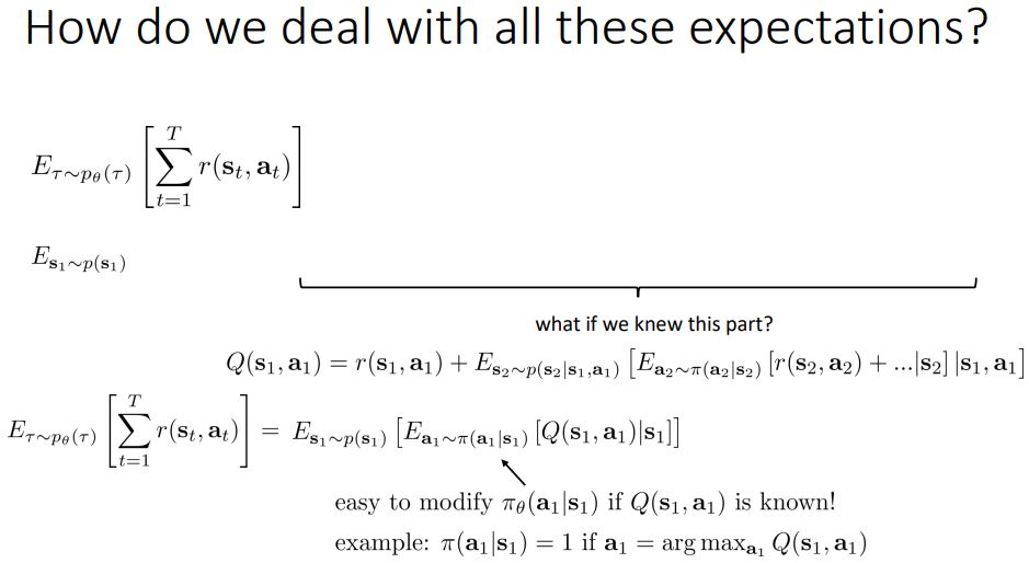 만약 Q 함수가 무엇인지 안다면, RL object에서 학습 객체는 drastically simplify 될 것이다.