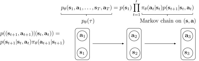 $p_{\theta}$ 의 경우 정책 세타가 있을 경우에 우리가 이전 모든 경로(궤적)을 볼 수 있었을 joint probility 에 대해 계산한 확률이다.