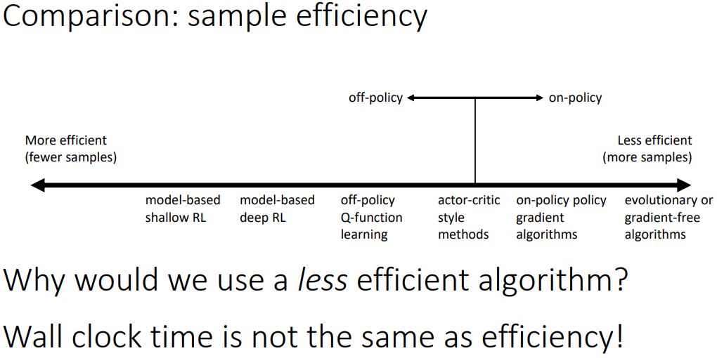 더 efficient 한 방법이 항상 더 좋은것은 아니다. simulation 비용이 많이 들지 않는다면, less efficient하더라도 더 나은 성능을 위해 많은 sample을 얻어서 학습하는 것이 효율적일 수 있다.