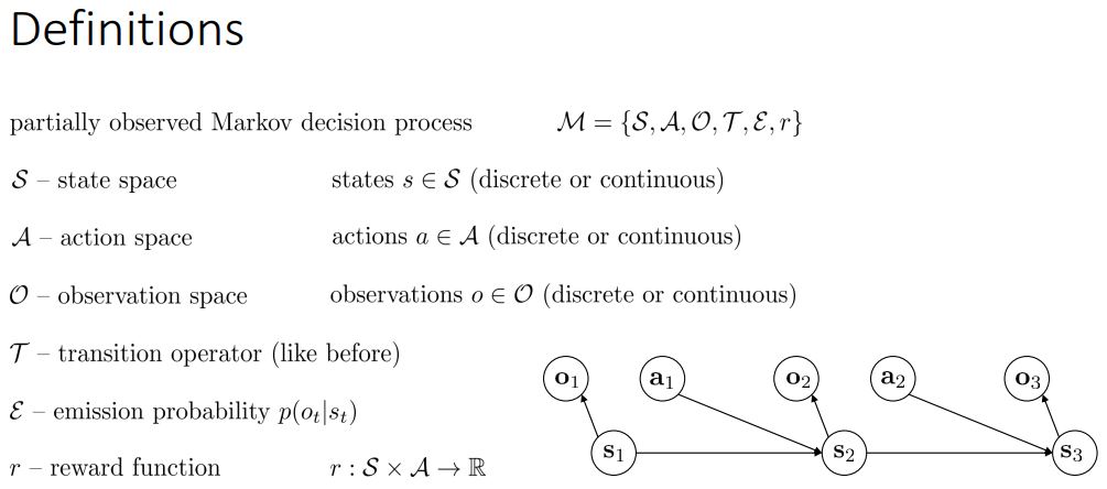 o는 이전에 배운 observation이며, e는 상태가 주어졌을 때 어떻게 보게 될지에 대한 확률 p(o_t | s_t) 이다.