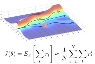 Policy gradient : 위의 목적함수를 직접적으로 미분.