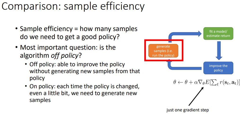 sample effiency => 좋은 정책을 위해 얼마나 많은 sample 이 필요한가?