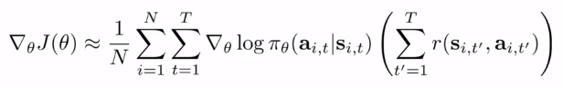 J(세타)도 정확히 계산이 안되기 때문에 r(s_i,t , a_i,t) 를 N번 sample해서 평균을 내는 것으로 그 값을 추정했다.
