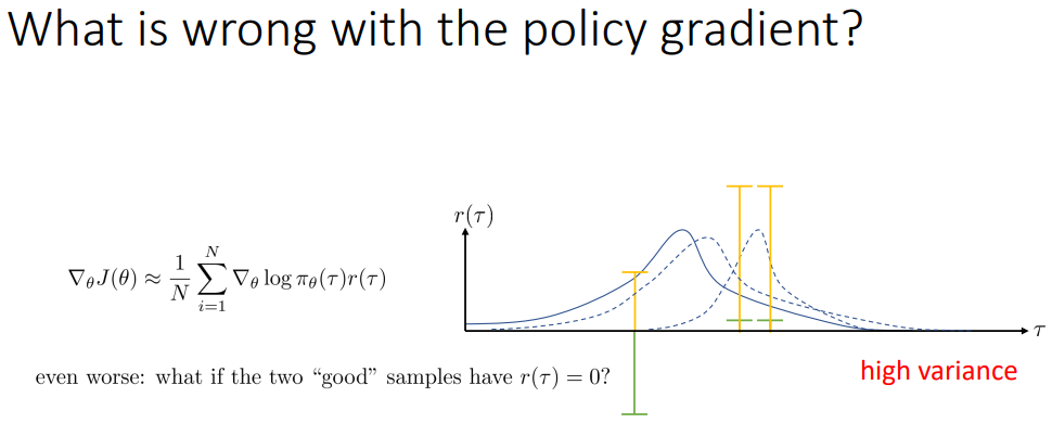 왜 아까 policy gradient가 그 자체만으로는 잘 동작하지 않는다고 했었는지에 대해서 설명 하겠다.