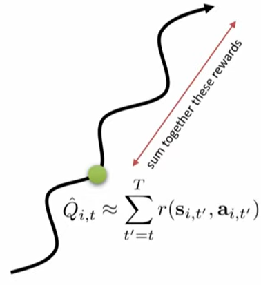 Q hat은 Q function을 예측하는 함수이다. (저기 x랑 u를 인풋으로 받는거는 s랑 a 인풋 받는거랑 같은 말이다. 다른 표현. ㅋㅋㅋㅋ 첨보고 뭐지 싶었는데 lecture 2에서 배웠던 내용) 이 Q hat function을 reward to go 라고 한다.