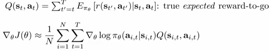 여기에서 샘플링한 하나의 estimate gradient말고 true expected reward-to-go 를 안다면, 그걸 그냥 싹 넣으면 되고 우리는 우리의 분산을 much 줄일 수 있다. (single sample보다 average는 분산이 낮지 당연)