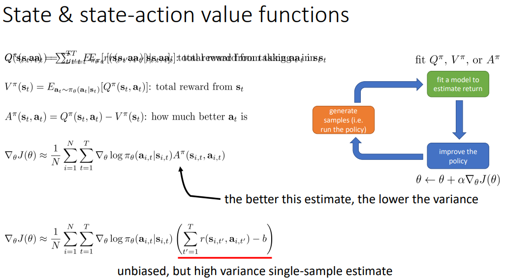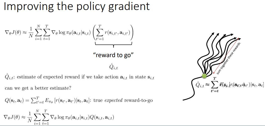 이번 수업에서는 더 나은 방법으로 reward to go를 예측하는 방법에 대해 배운다.