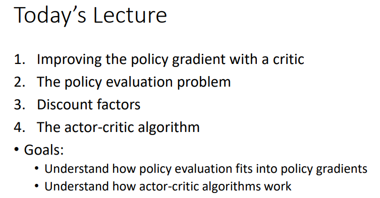 오늘 강의는 policy gradient를 critic과 함께 향상시키는 법을 배울 것이다.
