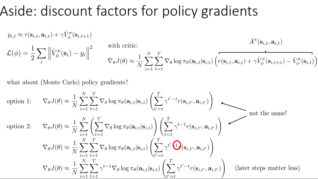 Actor-critic에 적용된 discount factor와 같은 것은 option 1이다.