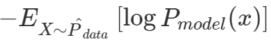 위 식의 왼쪽 term의 P는 우리가 가지고 있는 데이터의 분포를 가리키며, Q는 우리가 예측하게 되는 값이므로 오른쪽 term의 영향으로 나타나게 되는 KLD를 최소화하는 것이 우리의 목적이 된다. 위 식의 오른쪽 term (log P_model(x))이 (아래에 다시 씀) 크로스 엔트로피(cross entropy)라고 한다.