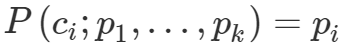 어떤 시행에서 k개의 서로 다른 카테고리가 있고 그 카테고리가 나타날 확률을 각각 p_1, p_2, …, p_k라 할 때 1회 시행에서 i번째 범주 c_i가 나타날 확률은 다음과 같이 표현한다.