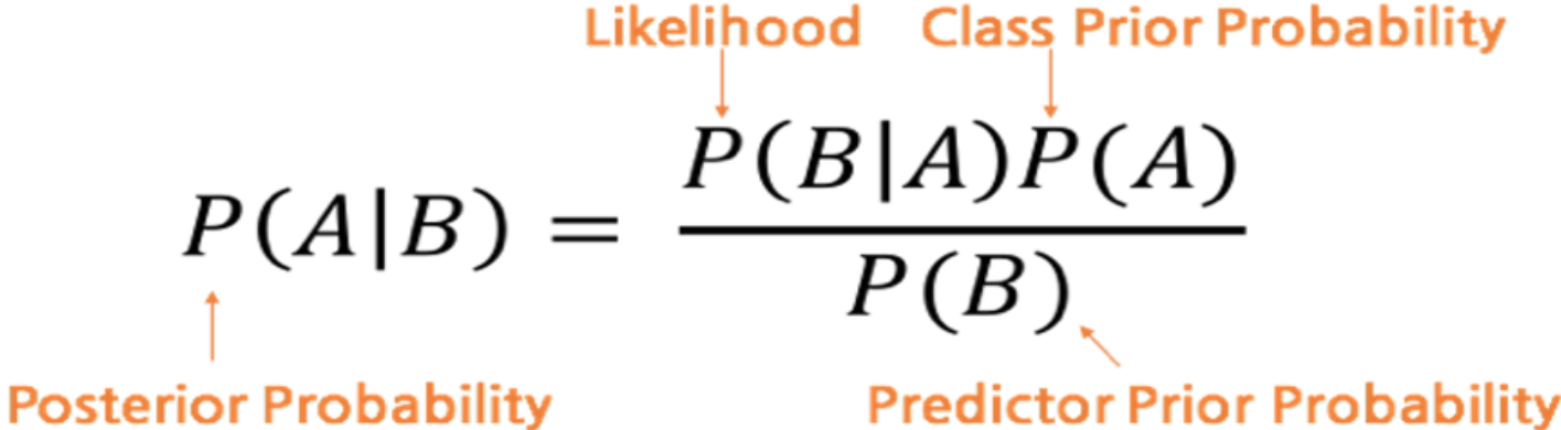 베이즈 정리라고도 불리며, 종속적, 의존적 관계에 놓인 사건들을 기반으로 확률을 구함.