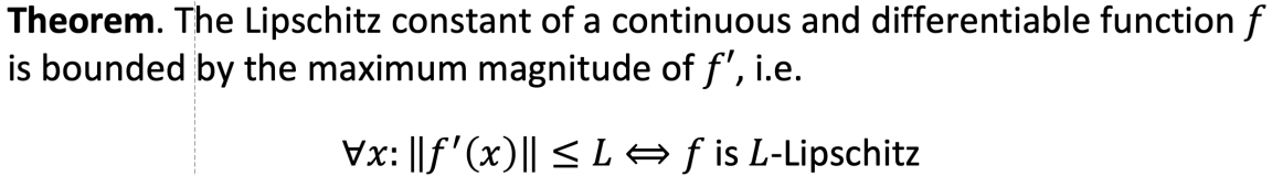 Lipschitz constant는 아래와 같이 gradient의 크기에 의해 좌우됨.