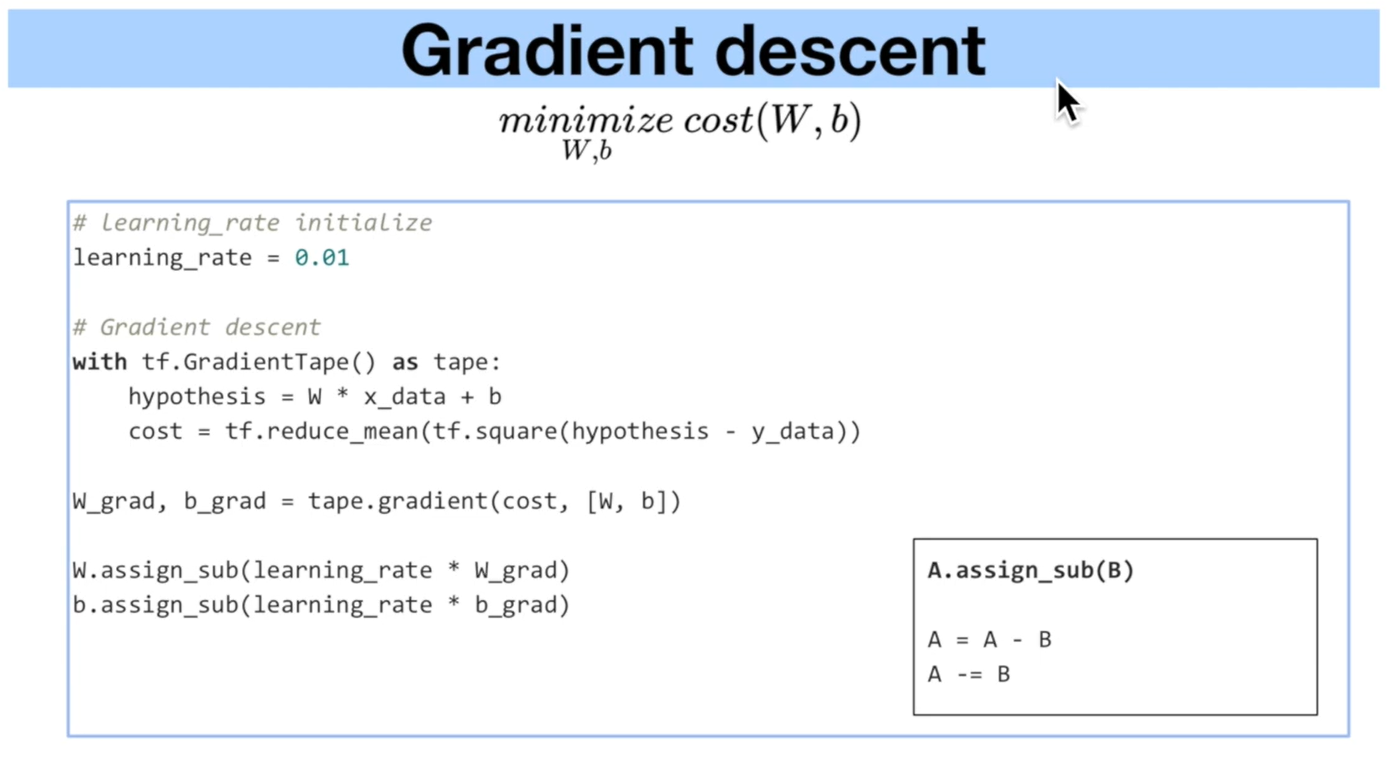 W_grad, b_grad = tape.gradient(cost,[W,b])