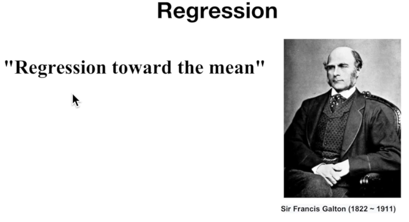 오 신기하다 이건 처음 들어서 공유하는데, regression이라는게 회귀라는 말로 번역되어서 그 직관적인 의미에 대해 물음표가 있으셨던 분들 많았을건데 (나도 그랬고) 이게 사실 표본을 짱 많이 뽑으면 결국 평균으로 회귀된다는 의미에서 회귀라는 말을 썼다고 한다. ㄷㄷ