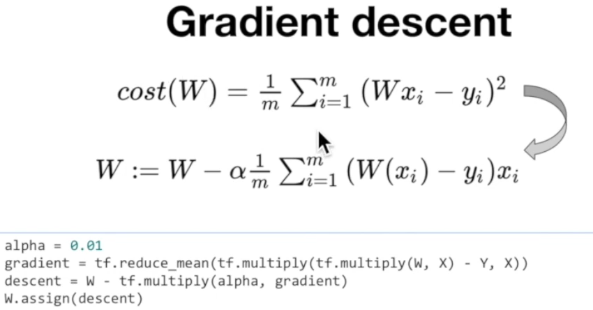 지난번에도 본 gradient descent를 tf 코드로 옮긴 것이다.