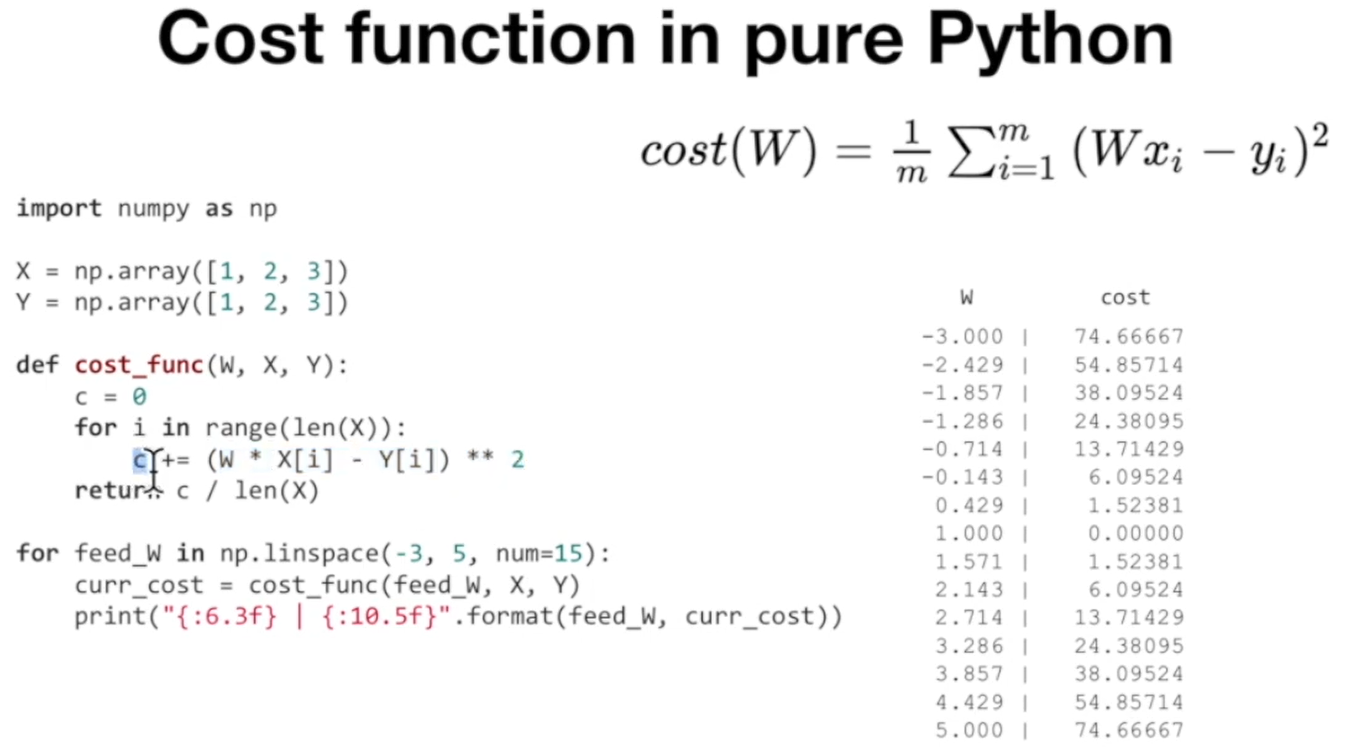 우상단의 cost function을 파이썬으로 구현 해보면 위와 같다.